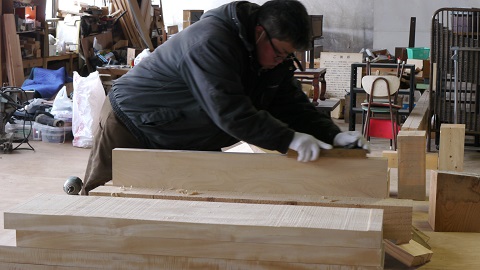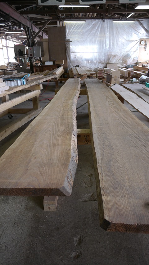 月が丘の新築現場用の階段の加工をしています。科学物質過敏症のお客さまに限り、赤松などの自然素材にも拒否反応が生じてしまうことが残念ながら少なくありません。色々調べていただいて、栗など広葉樹はまずまず大丈夫の〇印があったのですが、乾燥材で都合よく使える栗材が無いので、栃の大きな盤を割り割いて階段の段板を準備してみました。今回限りのとても立派な階段が出来上がると思います。