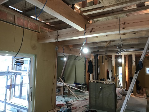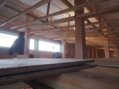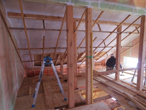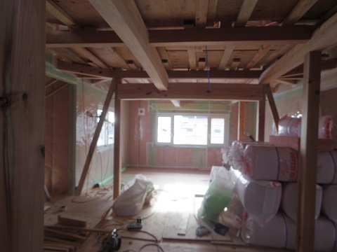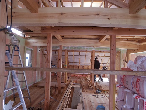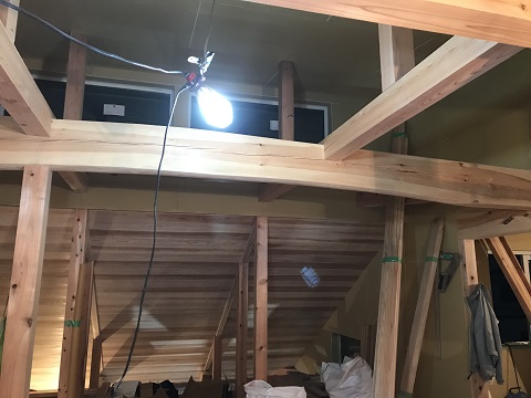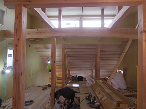 屋根の表裏が逆に見える月が丘の新築現場でした。内部も順調に進んでいます。