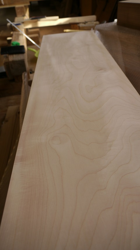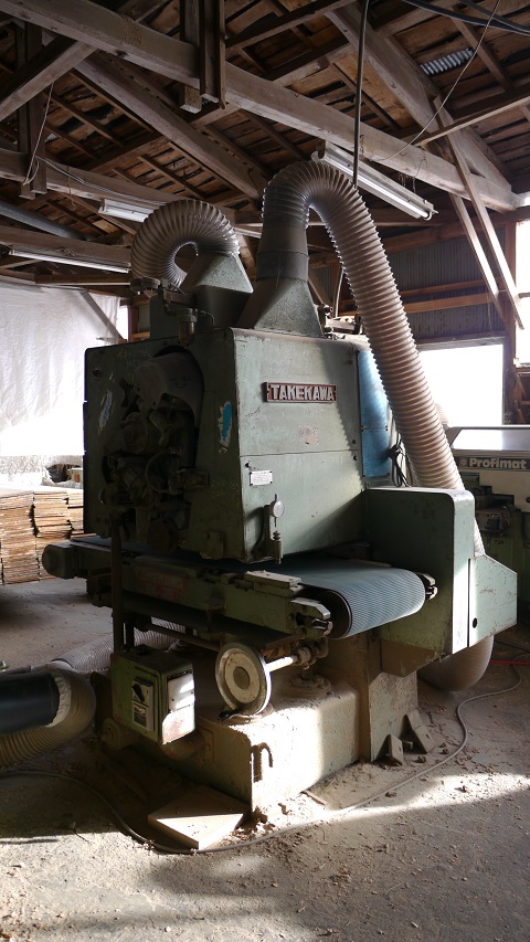 階段の段板用に準備した栃の板に鉋を掛けると、栃特有の杢目の癖で、逆目が立ってしまいます。そこで、かつやくしたのがこの大きなベルトサンダーです。とても綺麗に仕上がりました。最初上手く動かなくて、かなり手を加えて修理したかいがあると云うものです。うれしくなりました。