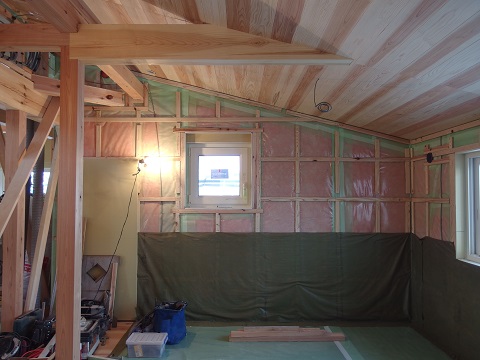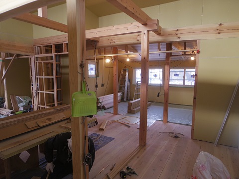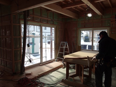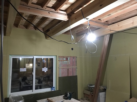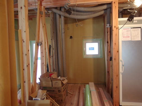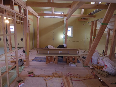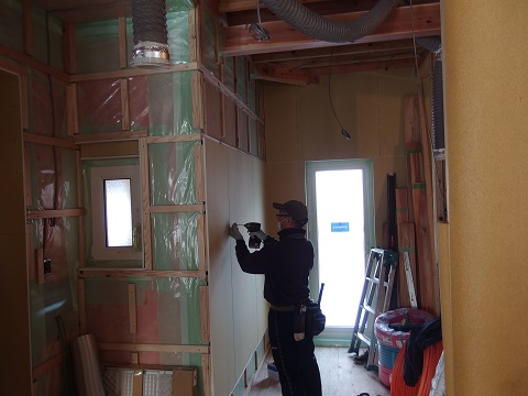 内装下地の石膏ボードの張込みが進んでいる新築現場です。