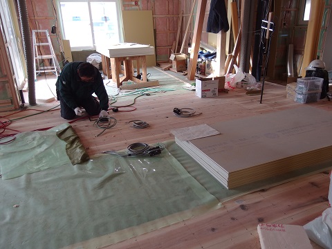 月が丘のオールアース工事の写真類です。床にも敷き込んでいます。