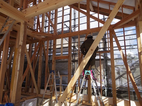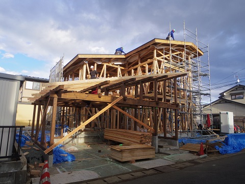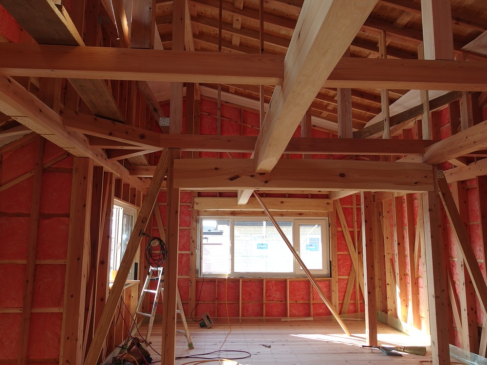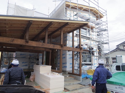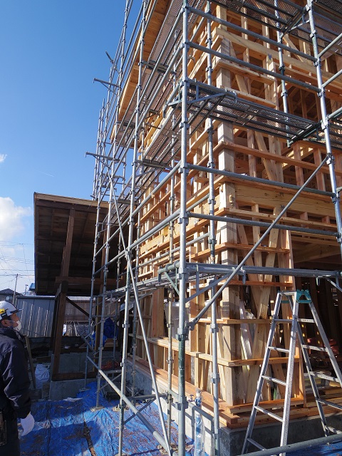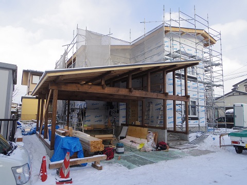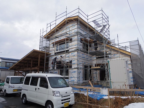 年末、外部の囲い込みを終えました。大工さん応援ありがとうございます。