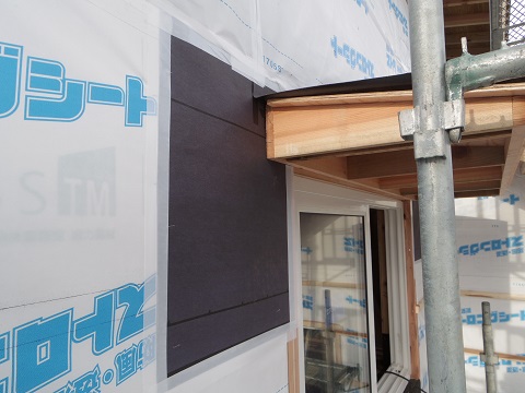 年明けの初仕事は外部庇の取り付けです。冬は太陽を有効に取り入れて夏は遮る事が求められます。雨水の侵入対策も大切な部分ですね。