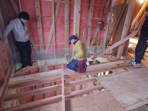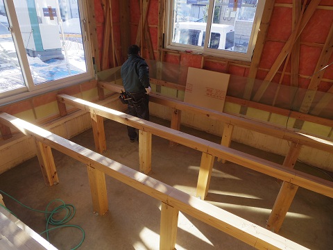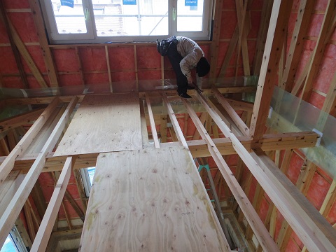 月が丘の新築工事は、2階の床下地が進んでいます。