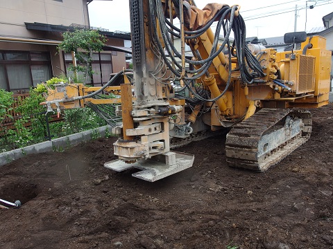 地盤改良工事が完了してから、地中熱ヒ-トポンプのボーリングが60m掘られました。