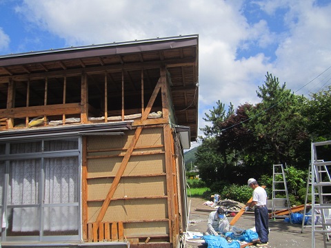 本日から工事再開の姥小石の大改修現場では、借り住まいが出来たのでお引越しをしていただいて、解体が進みはじめました。お盆明け早々に申し訳ないことではあります・・・