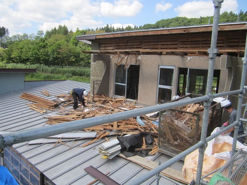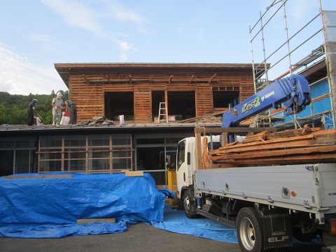 姥小石の大改修現場は屋根部の工事が進んでいます。