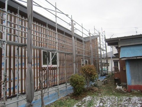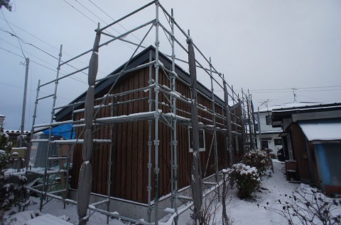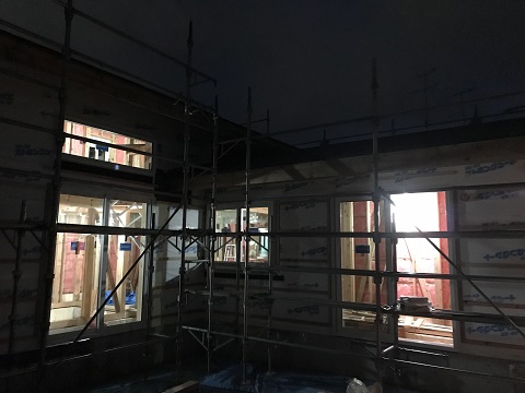 中堤の新築工事は待ちに待った外壁工事がはじまりました。