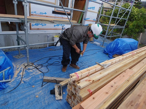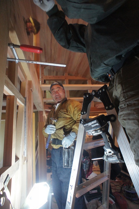 熱気あふれる現場の雰囲気です。当社熟練大工が入ってきりりとしてますが、現場監督には出せないものかと、届く写真を見ながら思うのです。