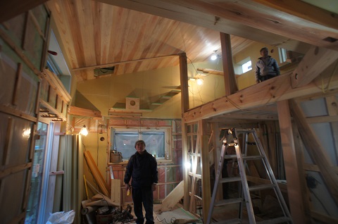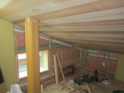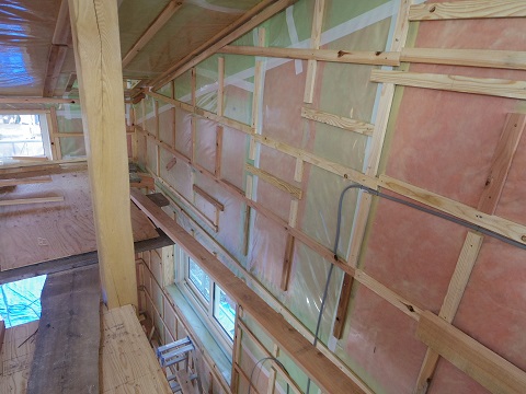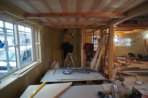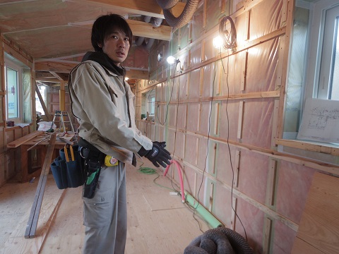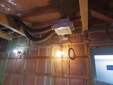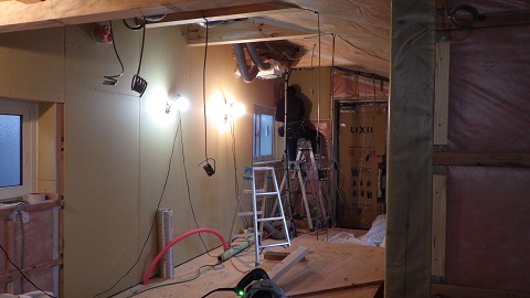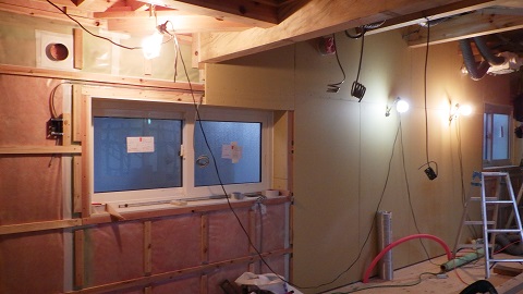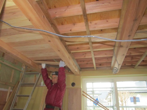 内部は、防湿工事と下地組も完了して、電気配線も着実に施工されてきました。