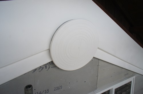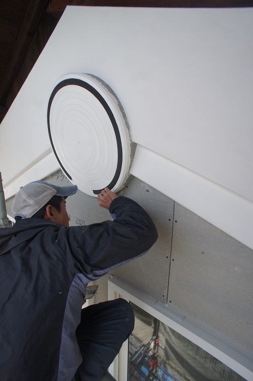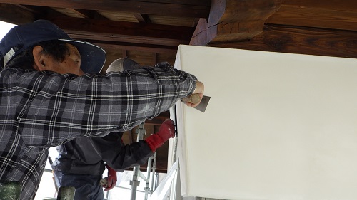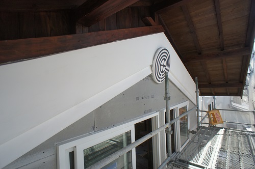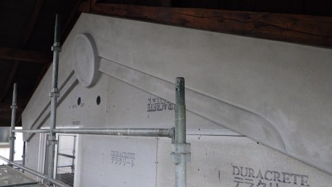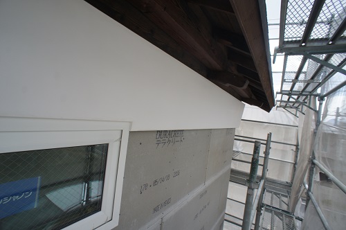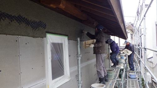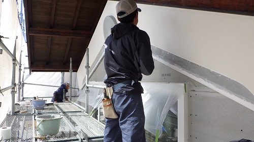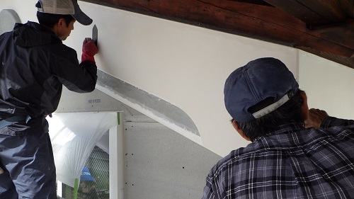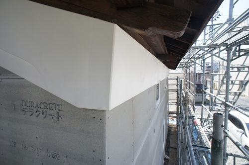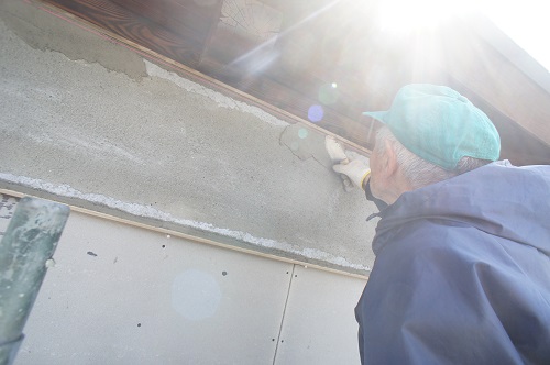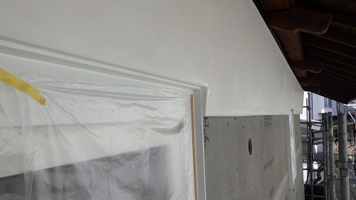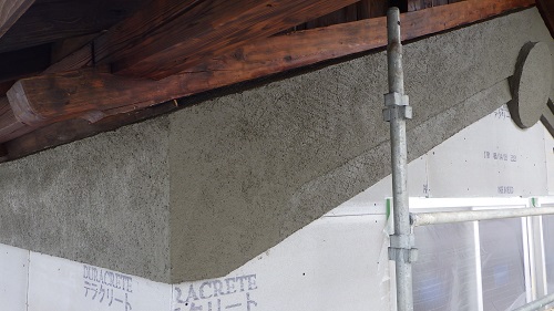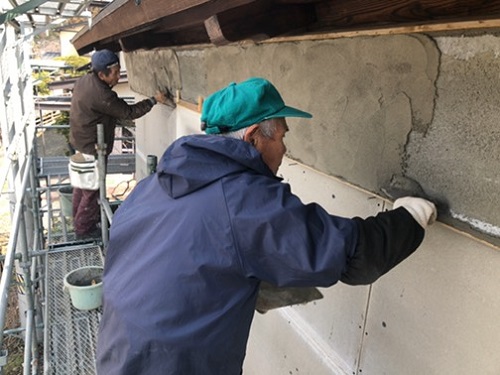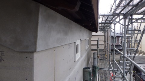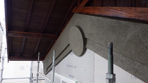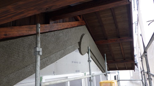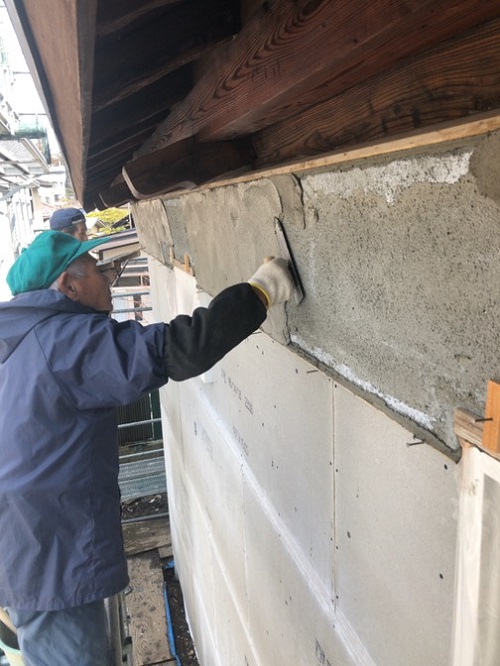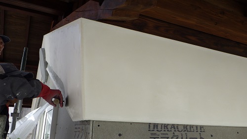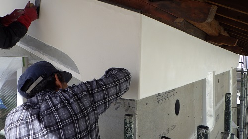 鉢巻部の左官工事風景です。