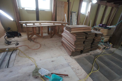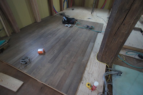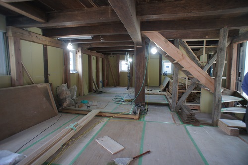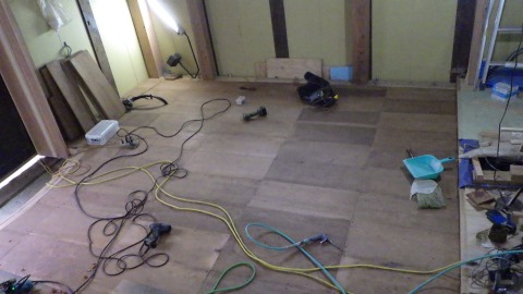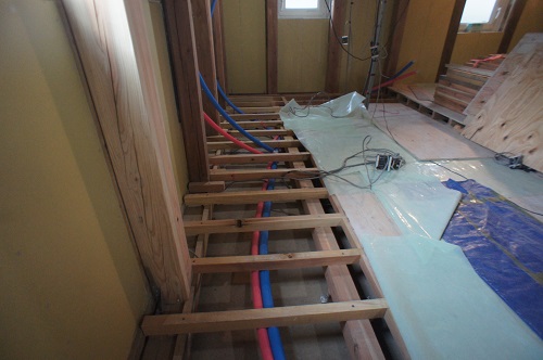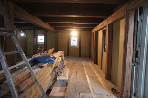次は内部の進捗で、水道配管を進める為に床を組んでいます。