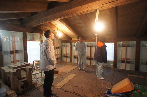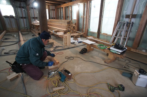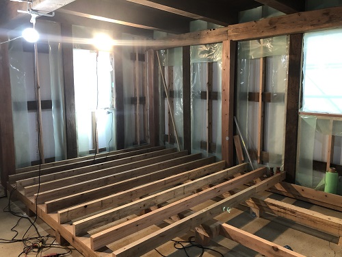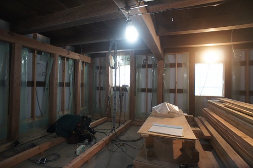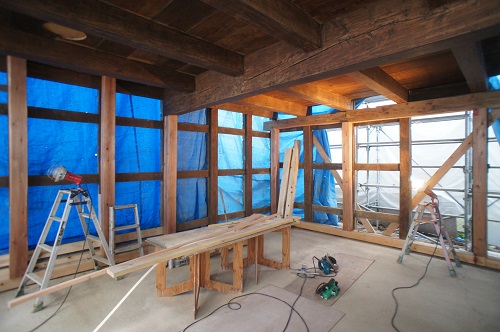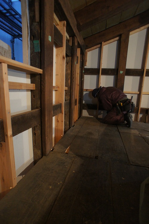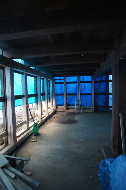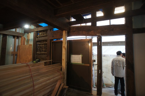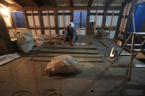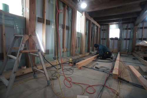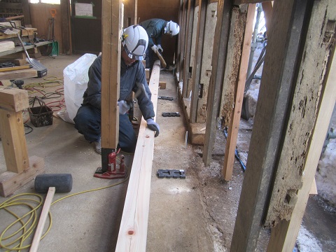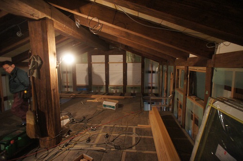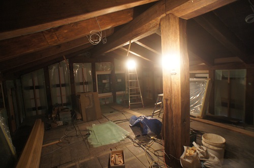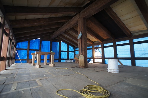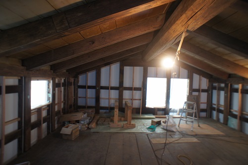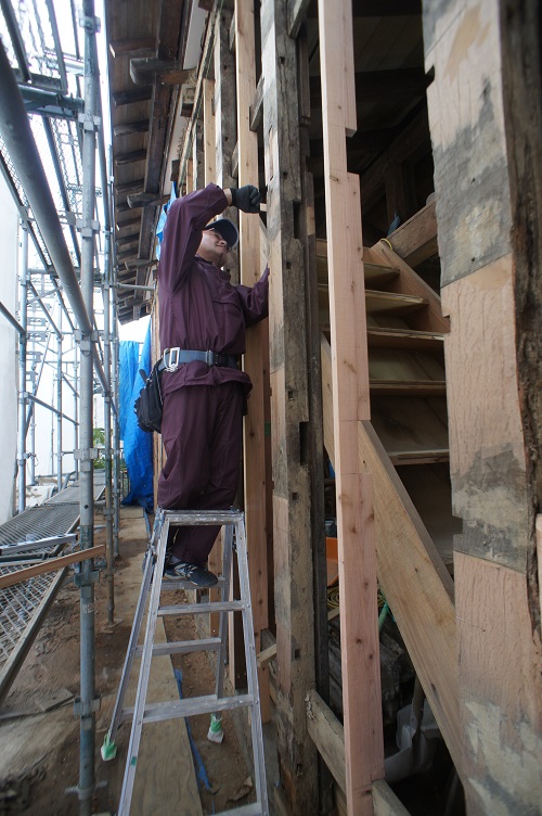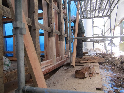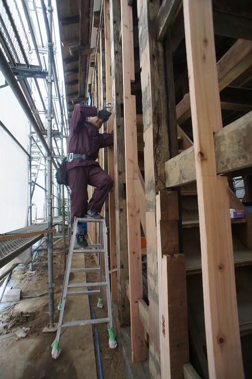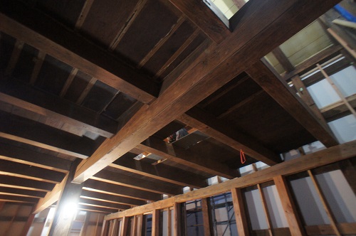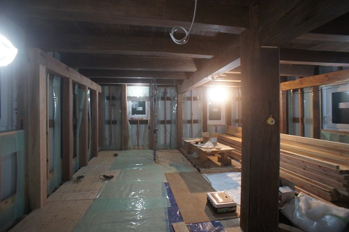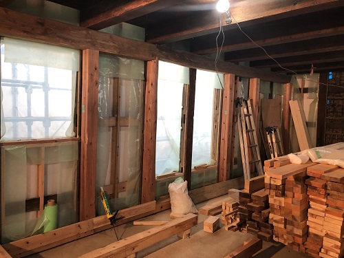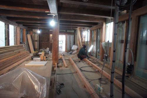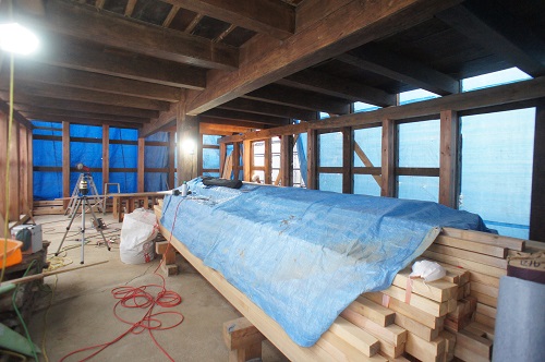 腐食して腐った柱の継ぎ直しまで構造補強工事が進みました。現代的に金物補強も行いますので、そこは昔と今との融合の技が相まみえます。