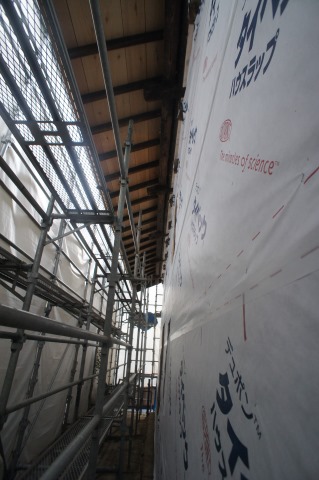 諸事情があり、工事中断していた鉈屋町の蔵大改修がやっと工事再開しています。まずは、外部の囲い込みを急ぎたいところですね。