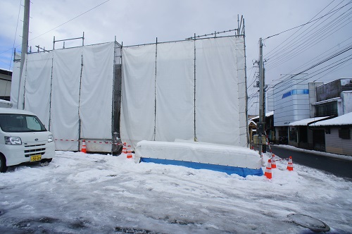 諸事情があり、工事中断していた鉈屋町の蔵大改修ですが、先日工事再開し現在は外部の囲い込みが進んでおります。