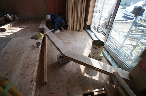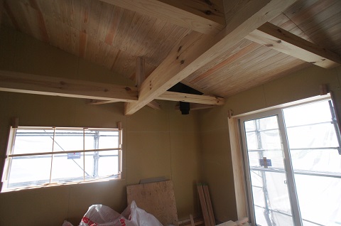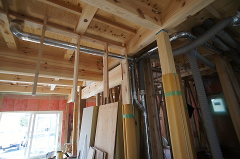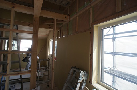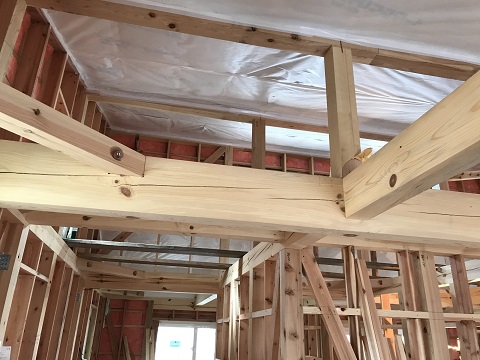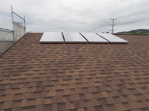 連休明けの進捗状況です。太陽熱温水パネルも屋根に搭載されました。エコ住宅です。
