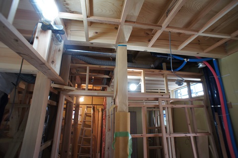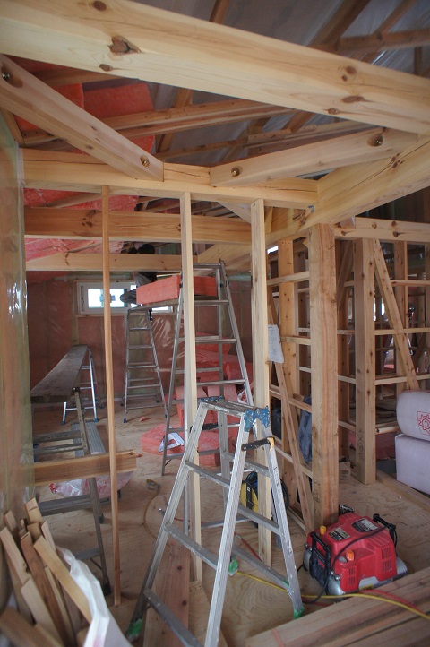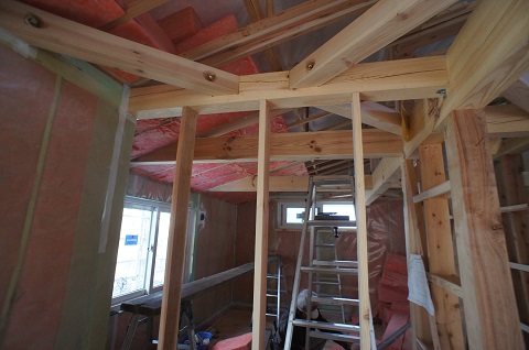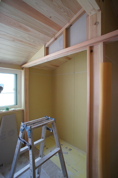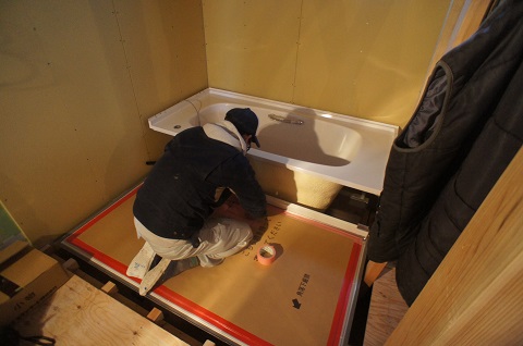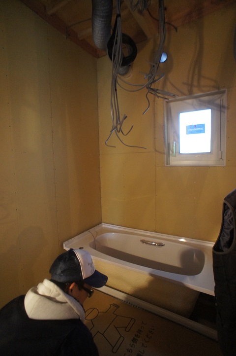 新築工事の進捗です。防火構造を造り、ユニットバスの設置も進みました。
