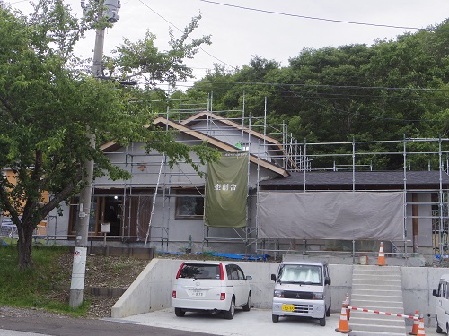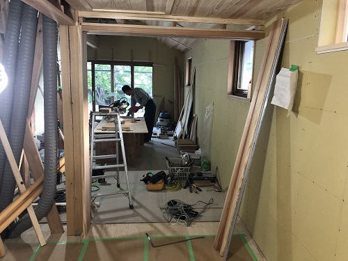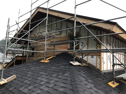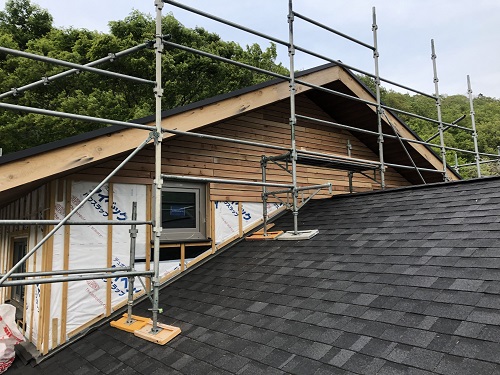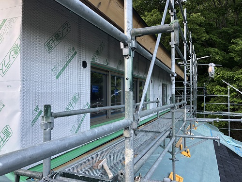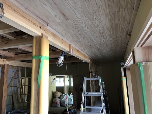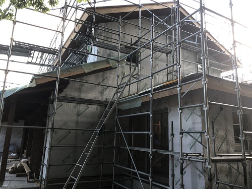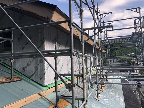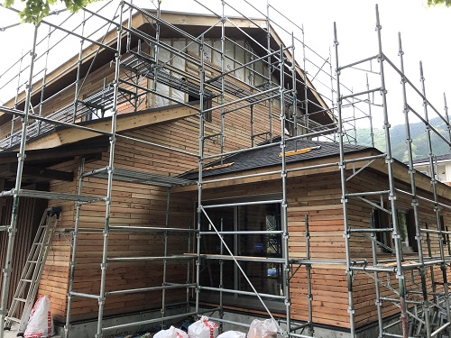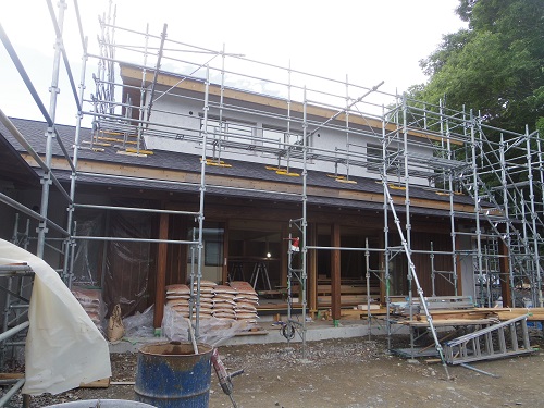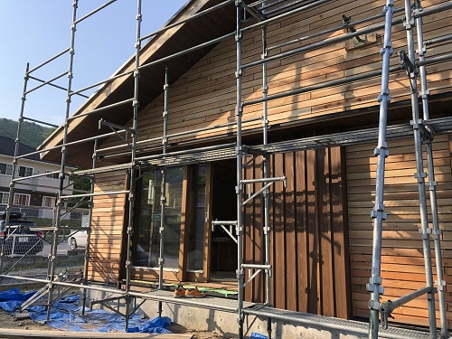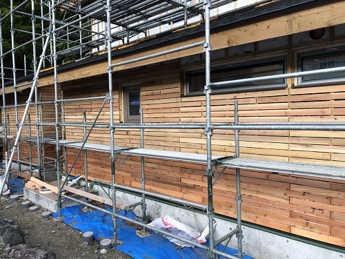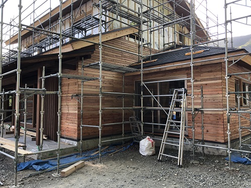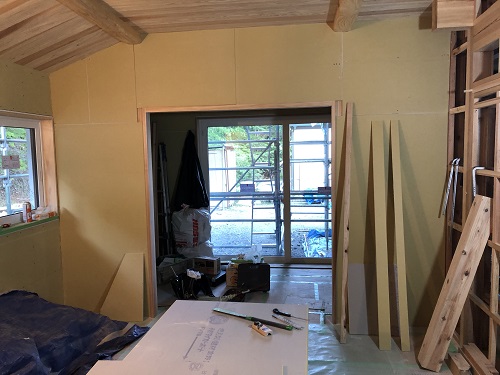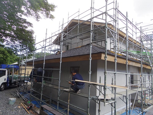 釜石の新築工事は先週残した外壁の下地板を張る工事が引き続き進んでいます。