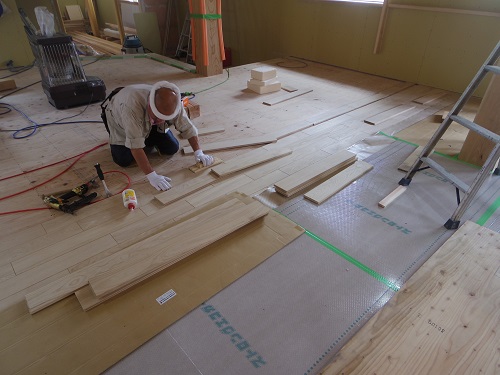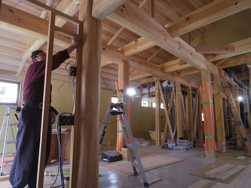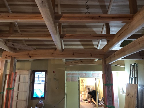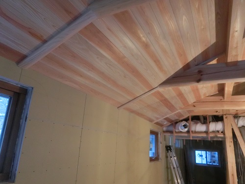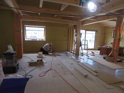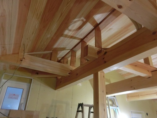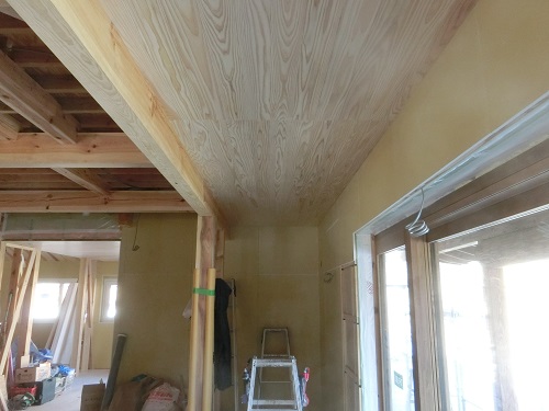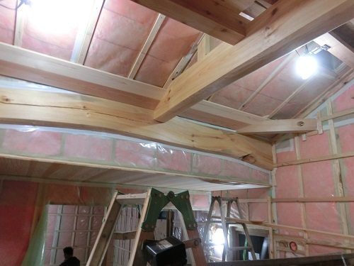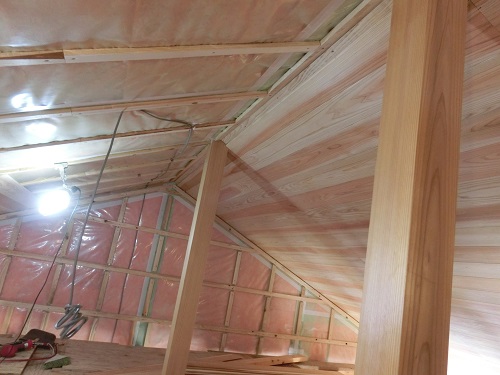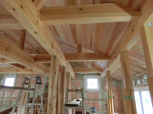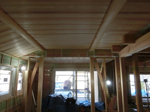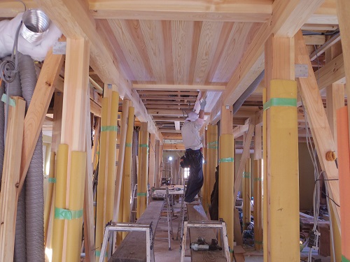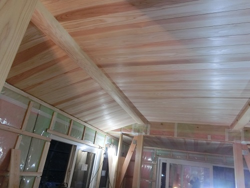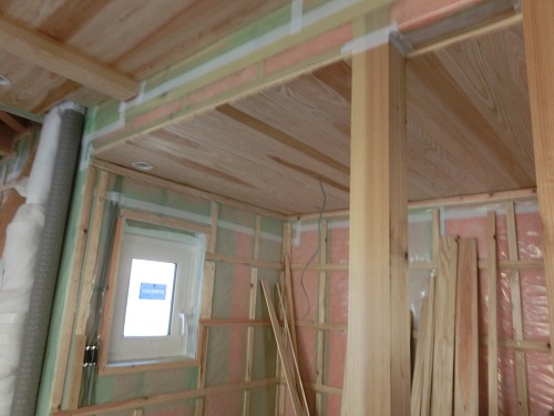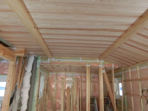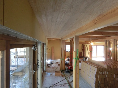 釜石の新築工事は、2階の天井板張込みが大分進んで遅れを取り戻そうと頑張ってくれていました。