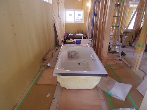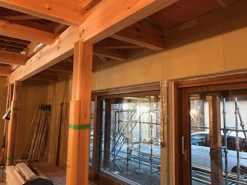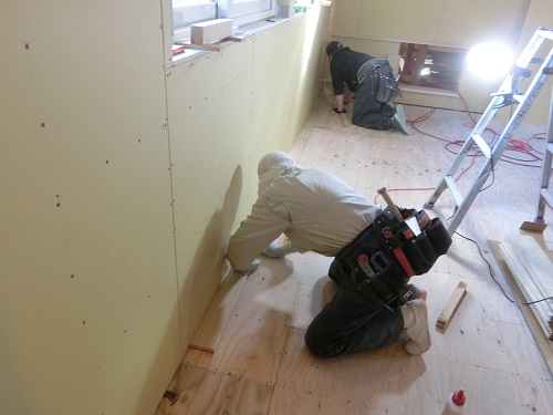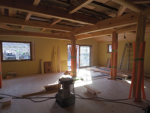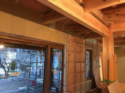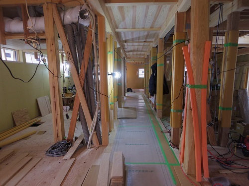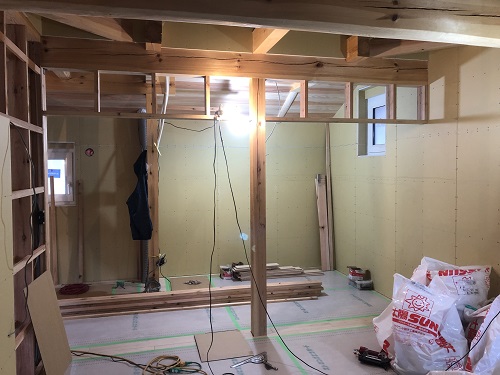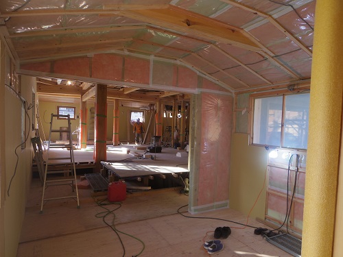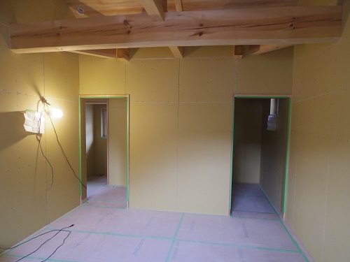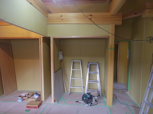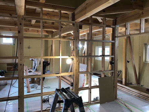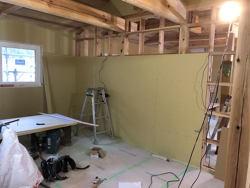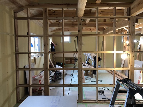釜石の新築工事は間仕切り壁の取り付けが進みました。この段階での写真写りを見ると仕上がりが楽しみになります。