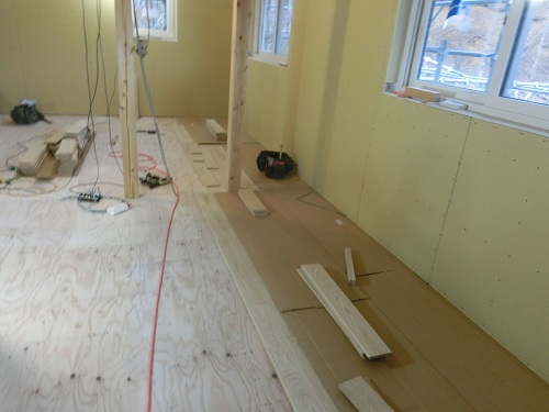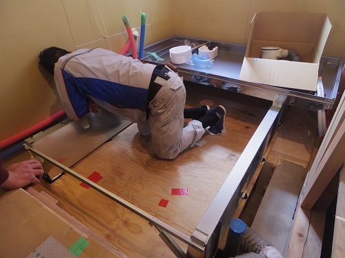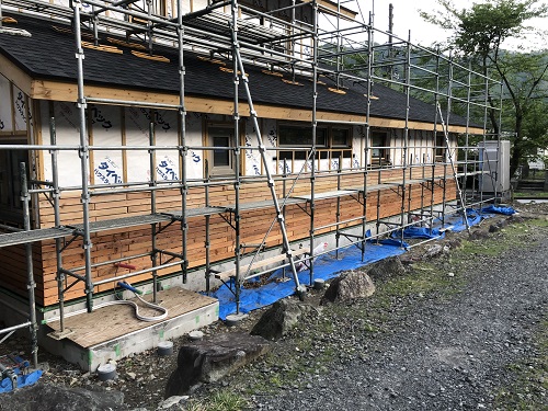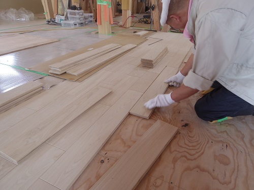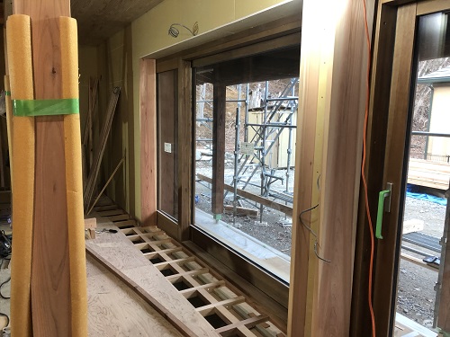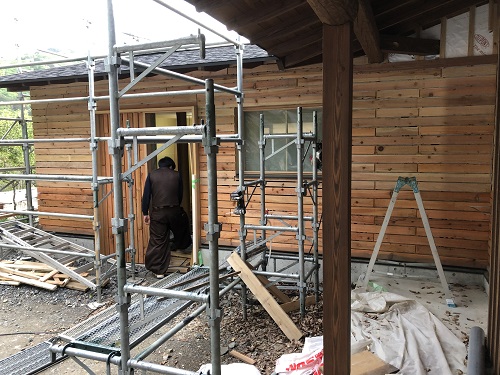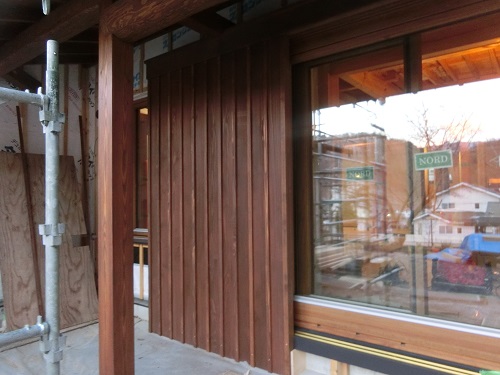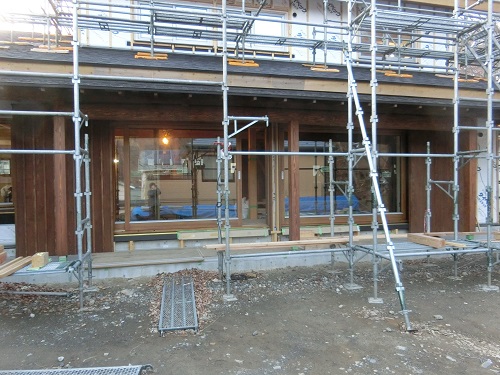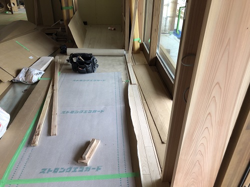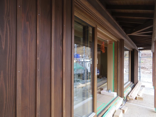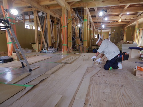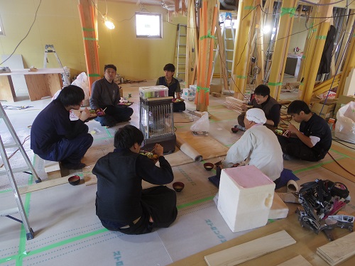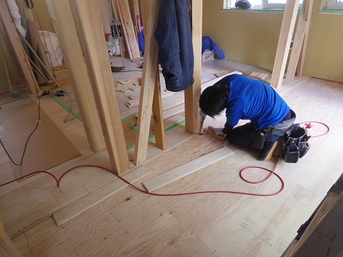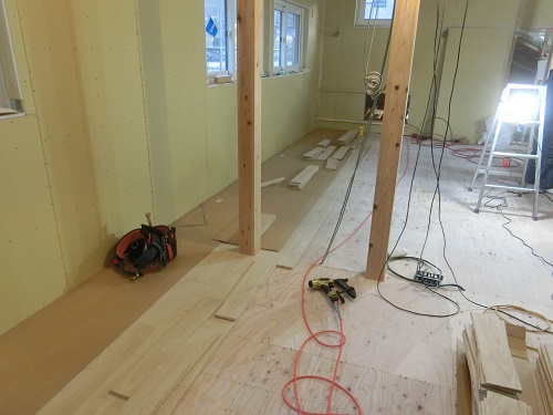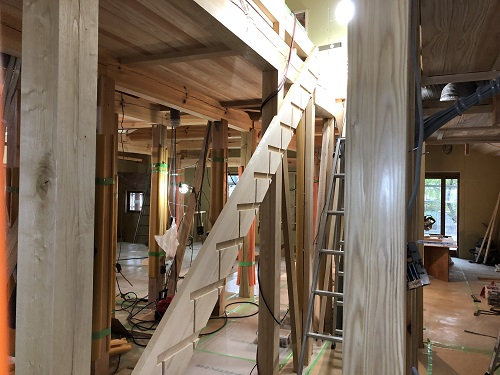 釜石の新築工事現場には若手が応援に入って外部を急ぎ進めることが出来ました。内部は床張りと階段の取り付けが進みました。
