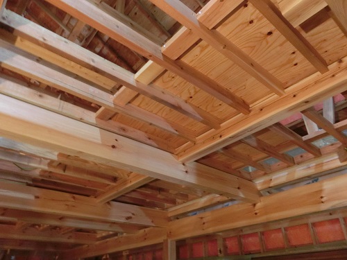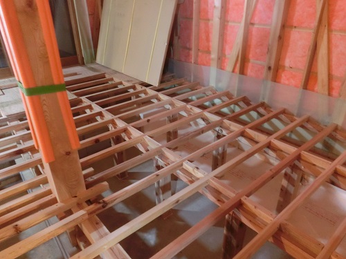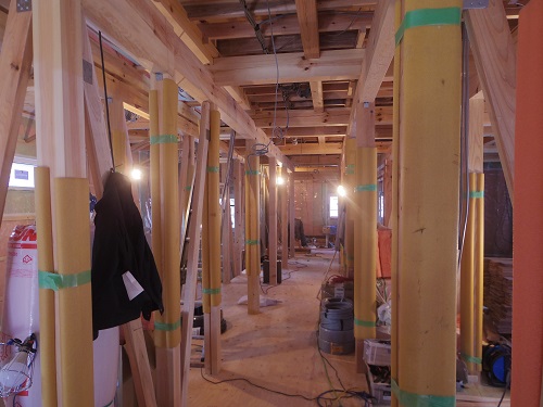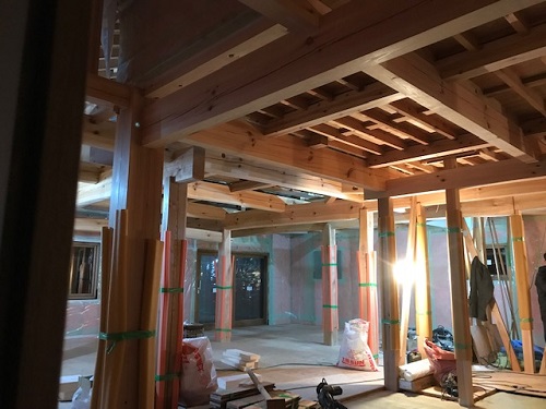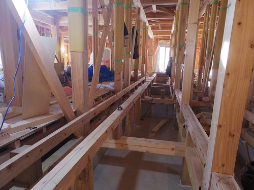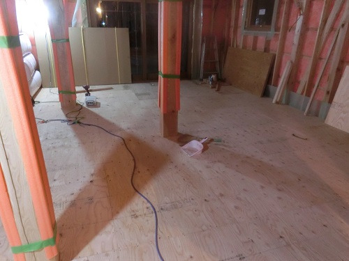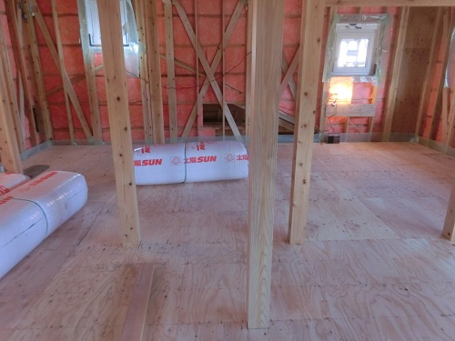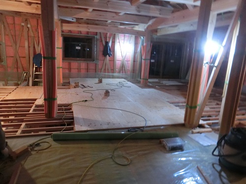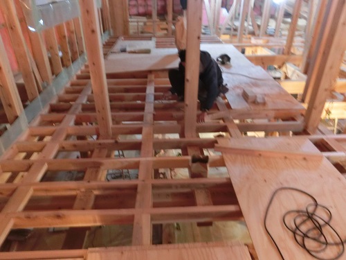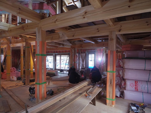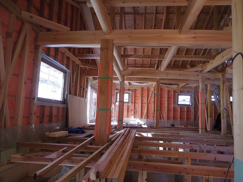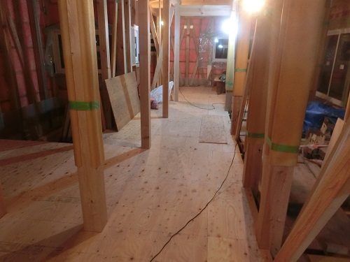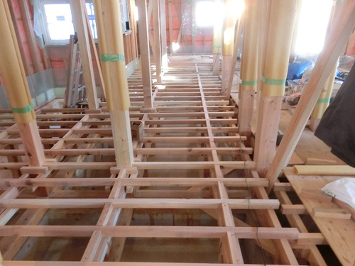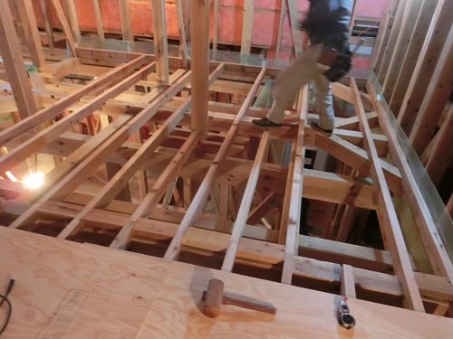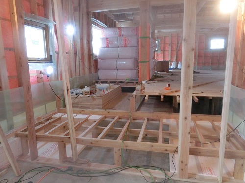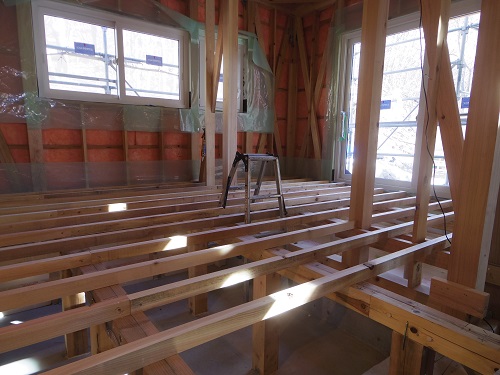 釜石の新築工事は、2階床下地工事が進んで、足元が良くなってきました。