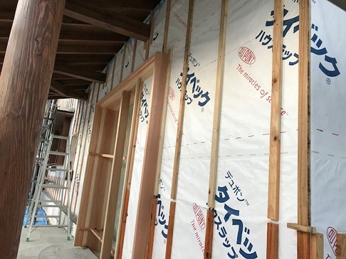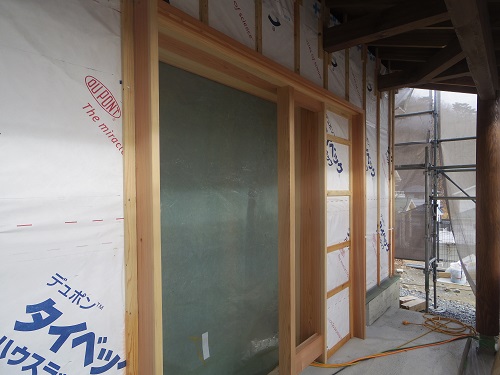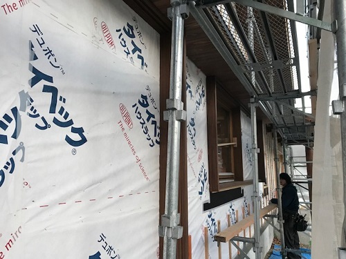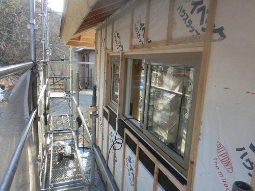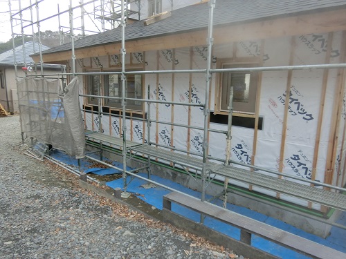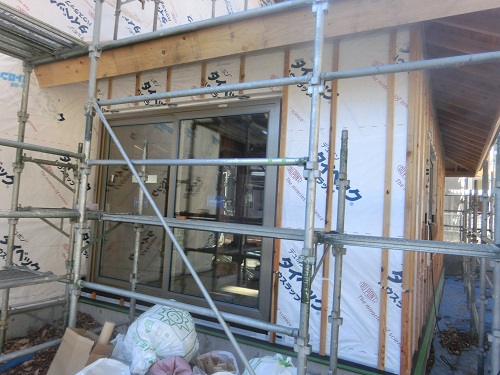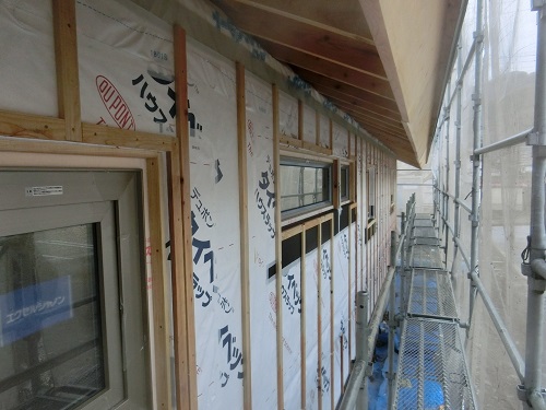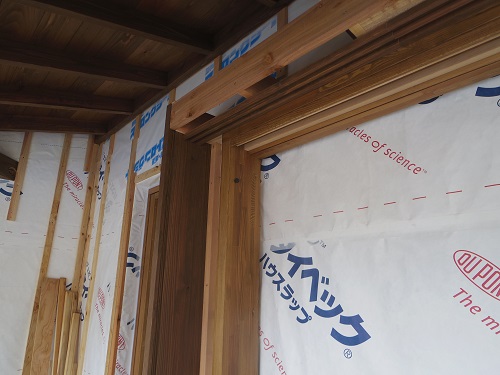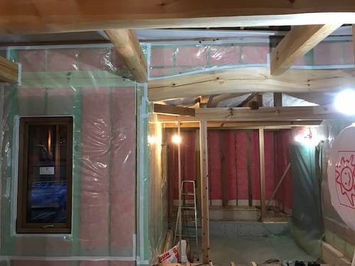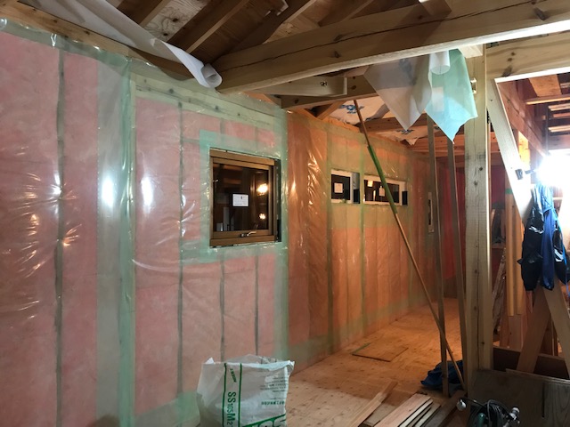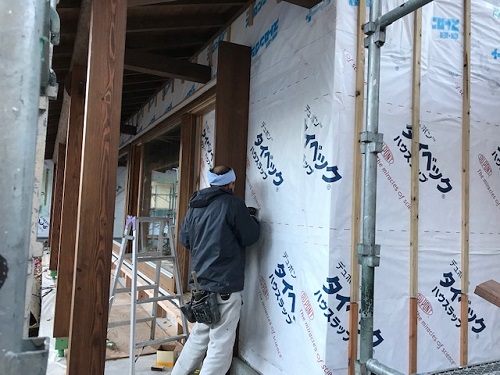 釜石の新築現場は、壁断熱を入れ込んで、防湿シートの張込みが進みました。