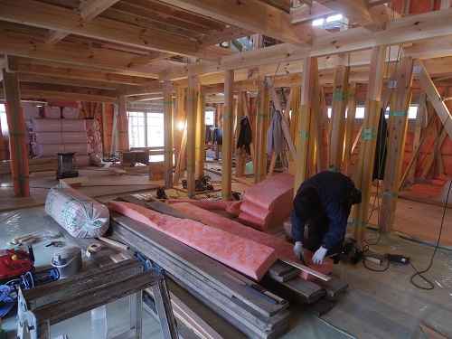 釜石の新築現場は、床下地が進み内部の足元が働き易くなってきました。