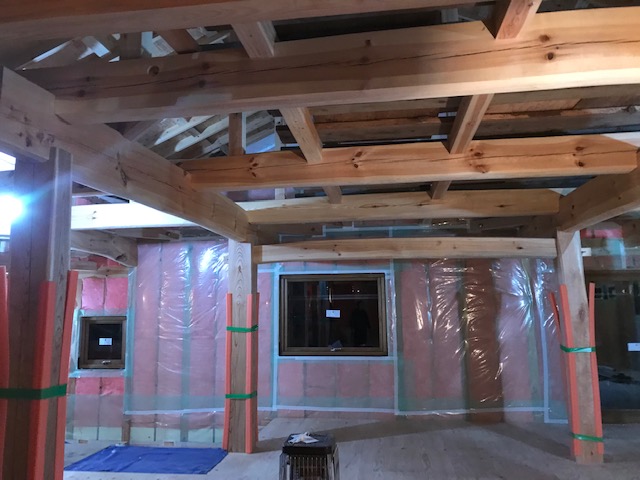 屋根断熱と壁防湿と壁下地が進みました。建物が大きいので、大工5人居ても時間がかかって苦戦している雰囲気ですが、大切な所なので、丁寧に進めたいと思います。