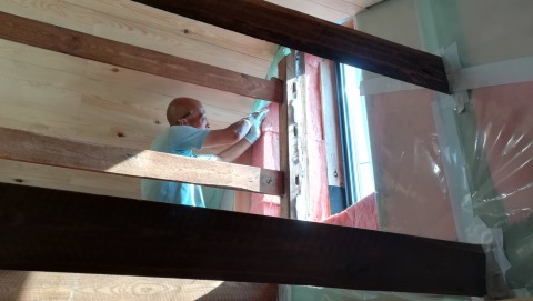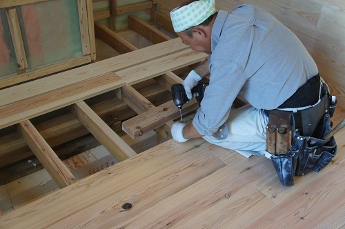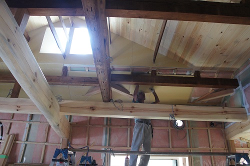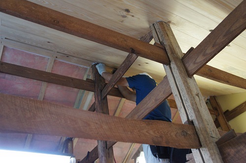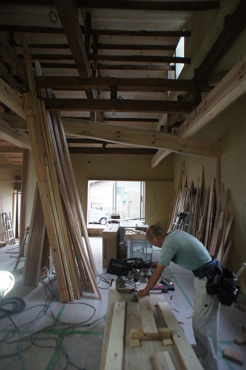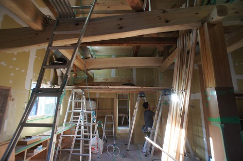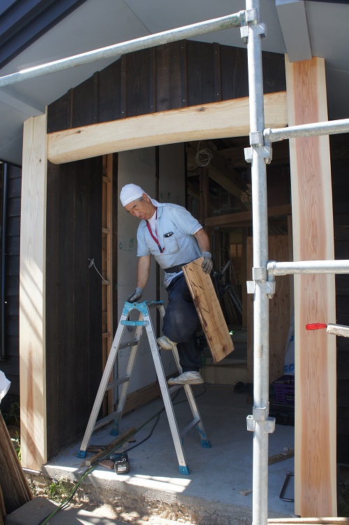 茶目っ気で隠れる生方大工です。もう直ぐ還暦ですが、こうした大工造作が必要な大改修工事にはその長年培った経験と技術が必要です。若手が増えている当社ですが、年配の大工さんもとても有難い存在なのです。こうしたことから、私はこれからの時代も同様に木を扱う経験を積んだ職人さんを育てることで、今現在建てられている色々な住まいの手直しや再生力に繋がるのだと思っています。