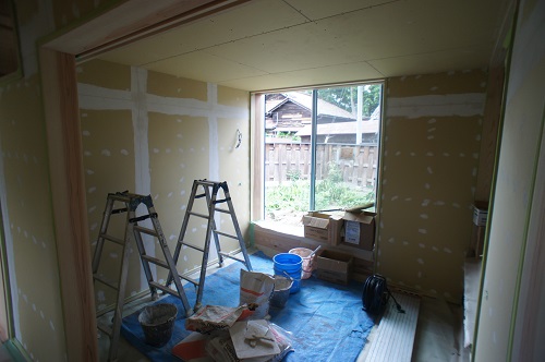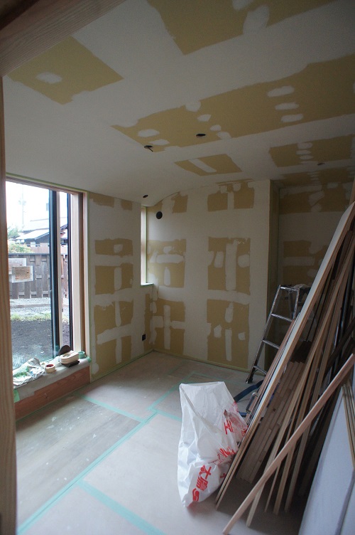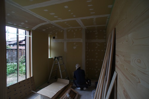 今月完成予定の大改修現場では、内装のパテ打ちも始まっています。