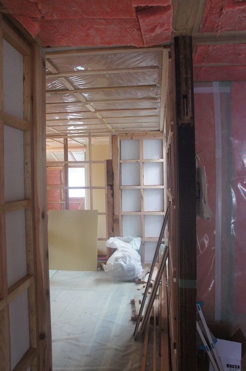 大改修現場の進捗です。古いものを直して住む高尚な価値観を施主様と共有して取り組んでいます。大正時代の新築時には断熱という材料も知識もなかったわけなので、現代の技術を駆使しながら、100年先にも通用する性能の住まいへと再生する取り組みです。