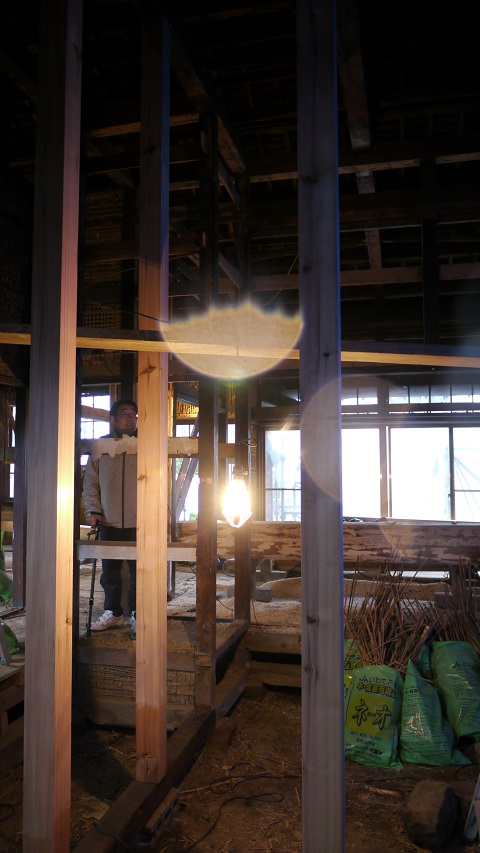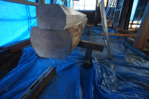 ただいま、一番のメインになる構造工事、大黒柱廻りの工事中です。