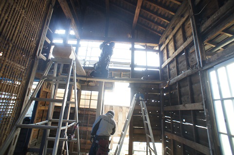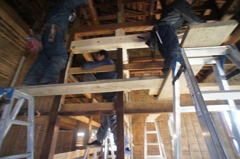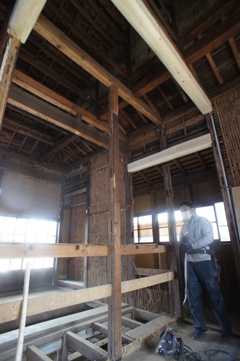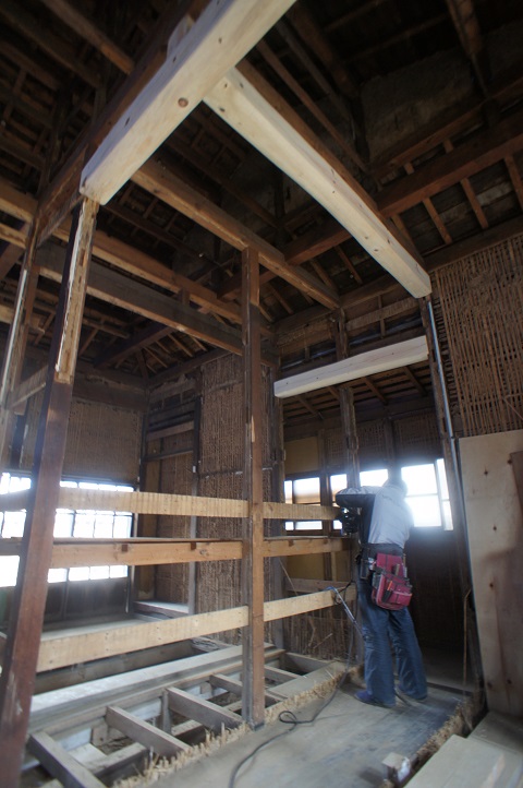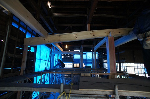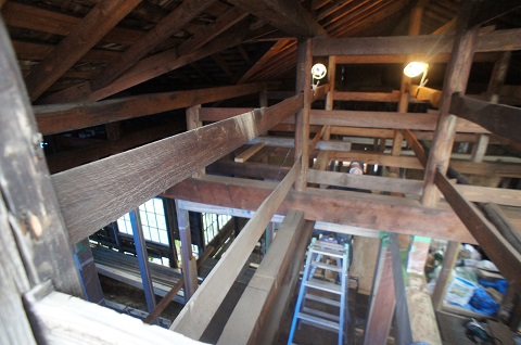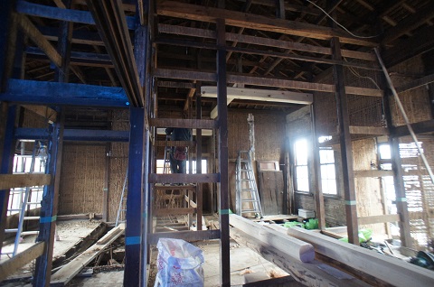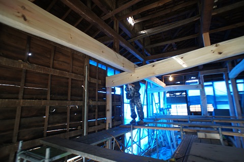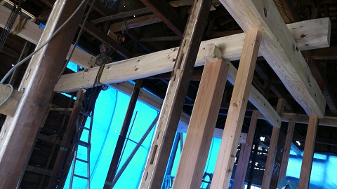 上田の大改修工事の構造補強の風景です。でもまだまだ補強工事が進む予定です。