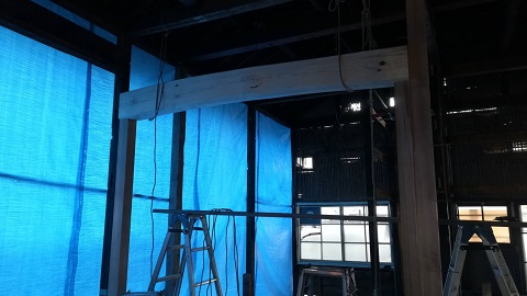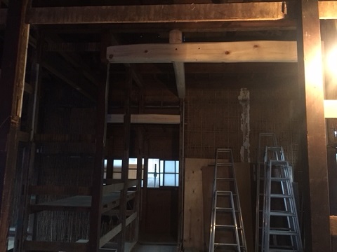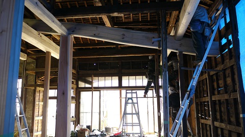 昨日から構造補強で梁を入れ込んでいる大改修現場でした。