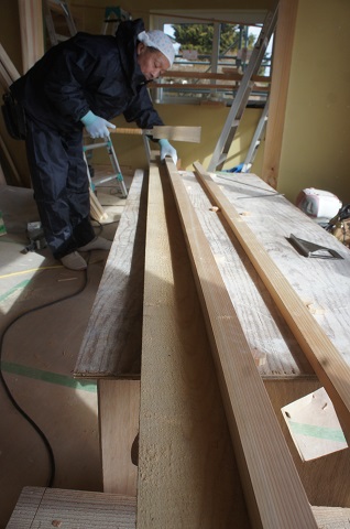 長々と工期延期をいただいてしまった花巻市本舘の新築現場ですが、大工工事が最後の大詰めの造作工事が進みます。