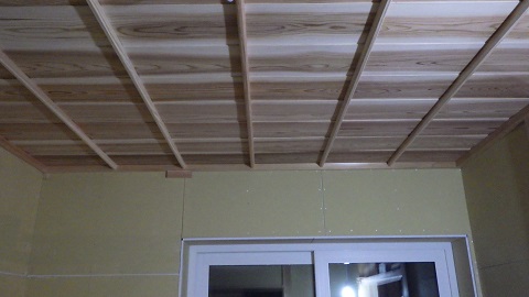 本舘の新築工事は和室の竿縁天井が完了していました。杉の木目も綺麗でいい感じですね