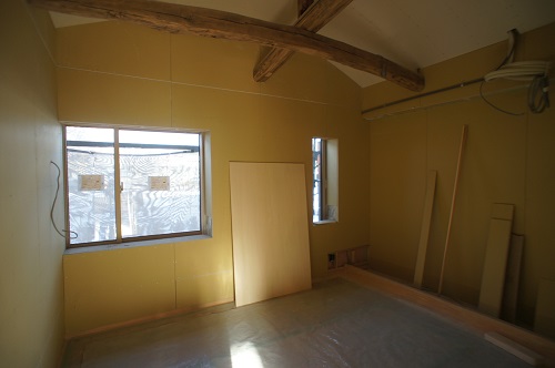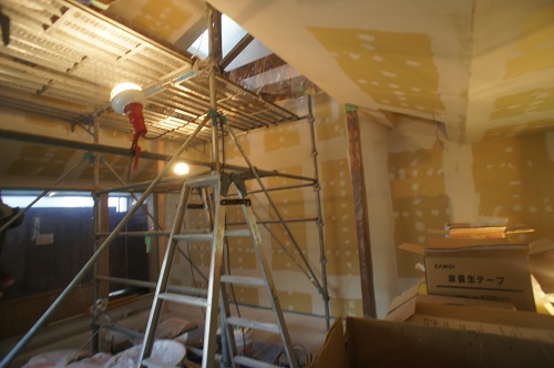 内装のパテ打ちが始まった大改修現場です。その進捗の雰囲気です。