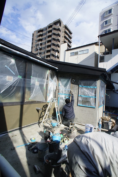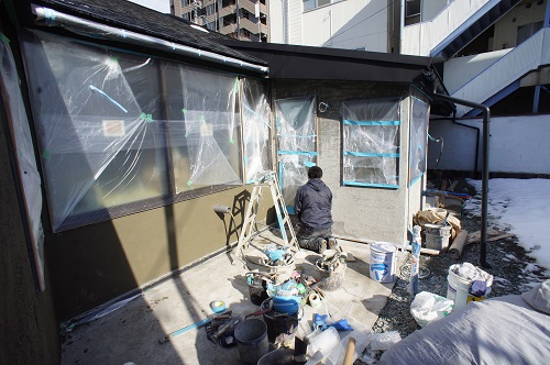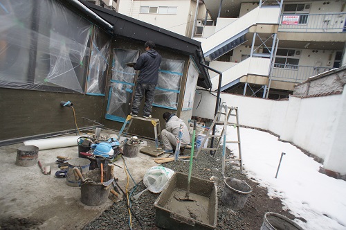 材木町の大改修は外装工事と内装工事が進んでいます。