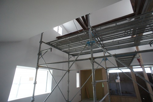 内装工事が進んでいる大改修現場では、新卒入社3年目の相川が設計士を目指しながらも内装もこなしています。店舗の隣では大工工事がまだまだ掛かるとの事でありました。