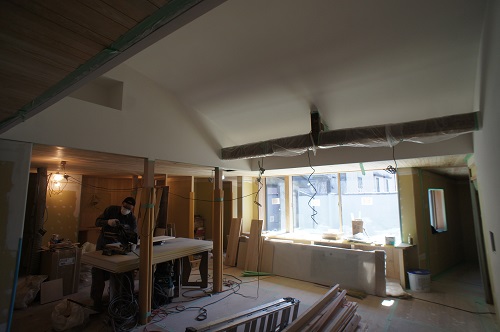 材木町の大改修現場では、大工が東山の応援で抜けた分を内装工事の職人が頑張って綺麗に仕上げてくれていました。そして、東山の応援も終えて、応援返しの人員を引き連れて戻ります。