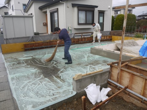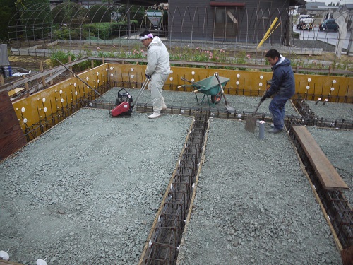 無事コンクリートの打設を完了しました。釜石の現場が建て方でも、この様に別途工事が進む様に成長した杢創舎です。