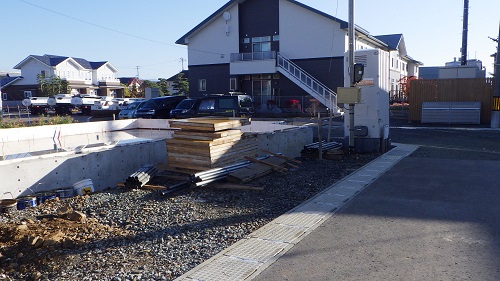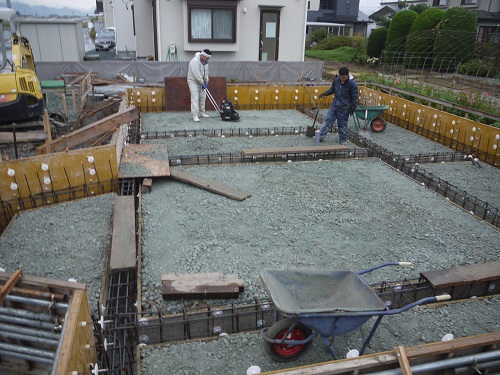 好摩では下太田の新築の車庫構造の刻みも進んでいます。現場では先日車庫コンクリートも無事打設されました。建方の準備が着々と進んでいます。