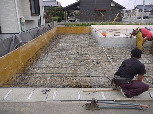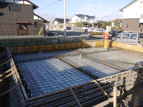 下太田の新築基礎工事は土間配筋も進み、コンクリート打設予定を待つばかりとなりました。