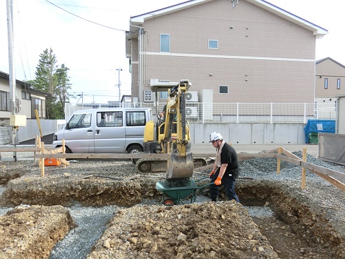 大工2年目の安保が重機担当してます。基礎も覚えることが多く楽しいと云います。