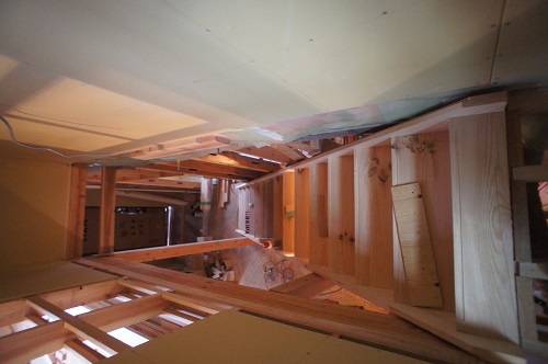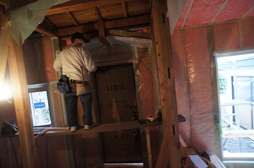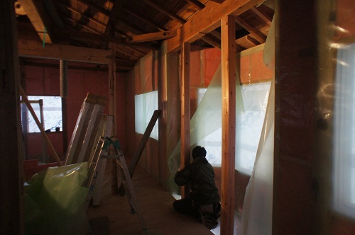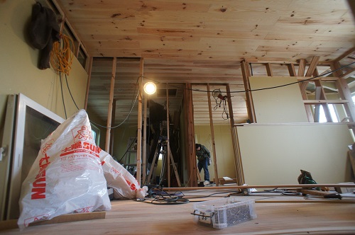 東山の大改修は、断熱防湿工事が進み電気配線工事も進んでいます。