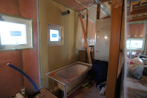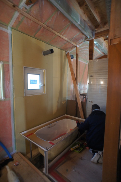 東山の大改修現場はUBの取り付けが進み、防湿工事も進みました。