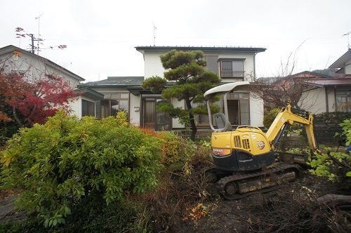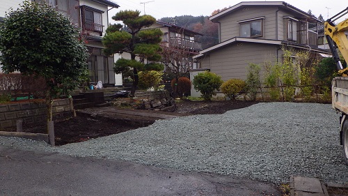 東山の大改修も進んでいます。まずは、庭木を撤去移植して駐車場を広げました。
