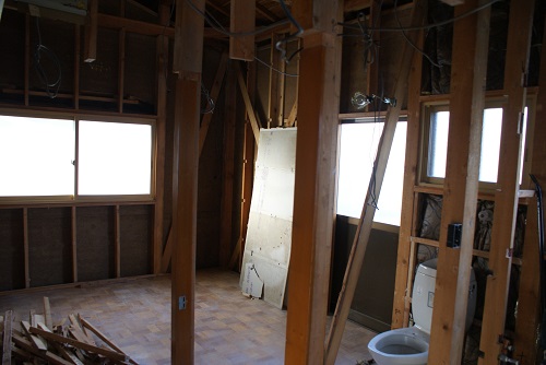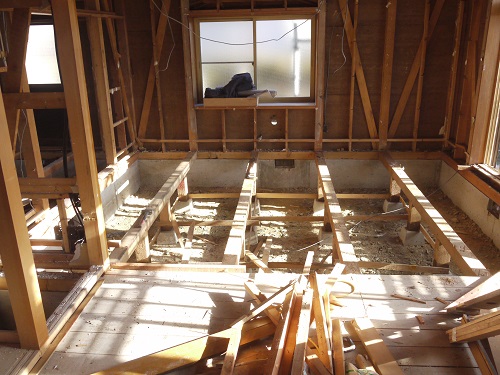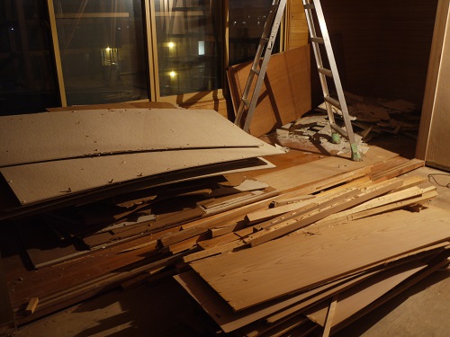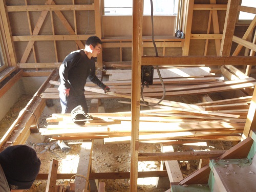 東山の大改修工事では内部建材の取り外しが進んでいます。