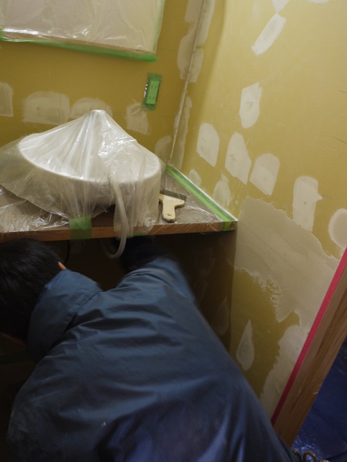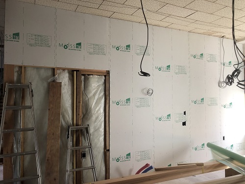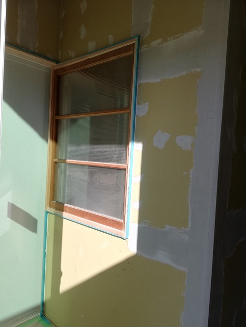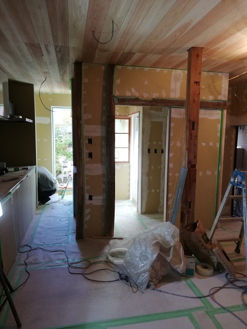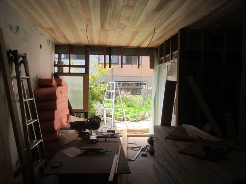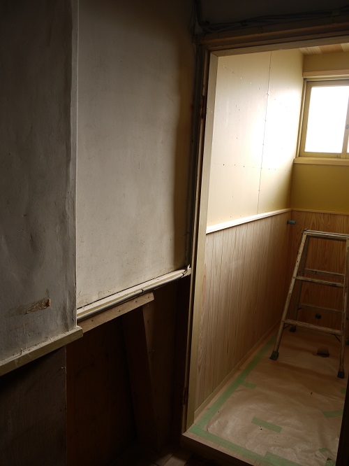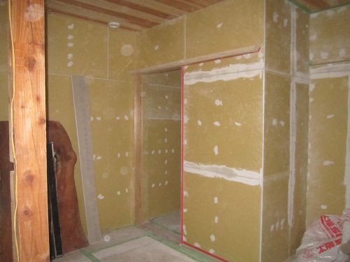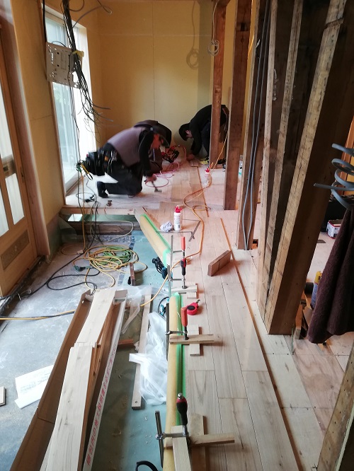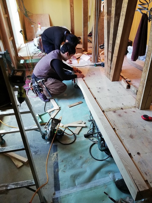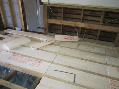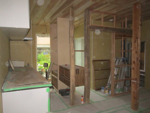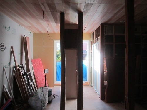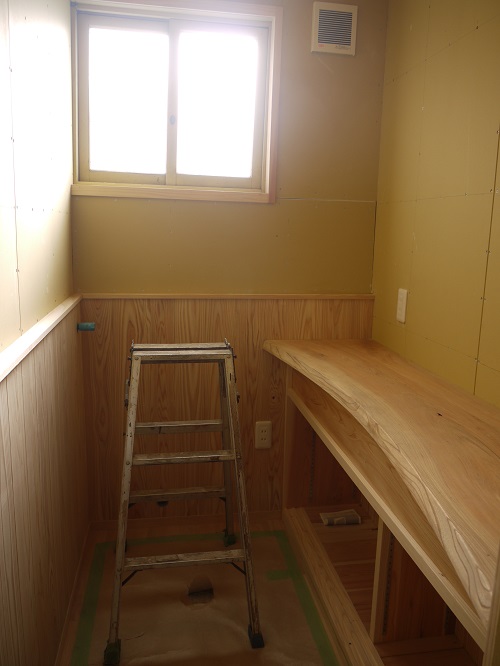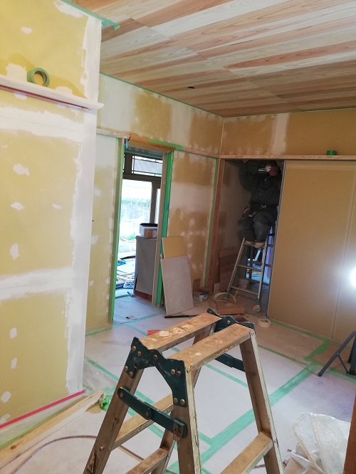 岩泉町での改修工事は内装のパテ打ちも進み、大工工事の残部分も同時進行させながら、室内移動の為の仕事が進んでいます。
